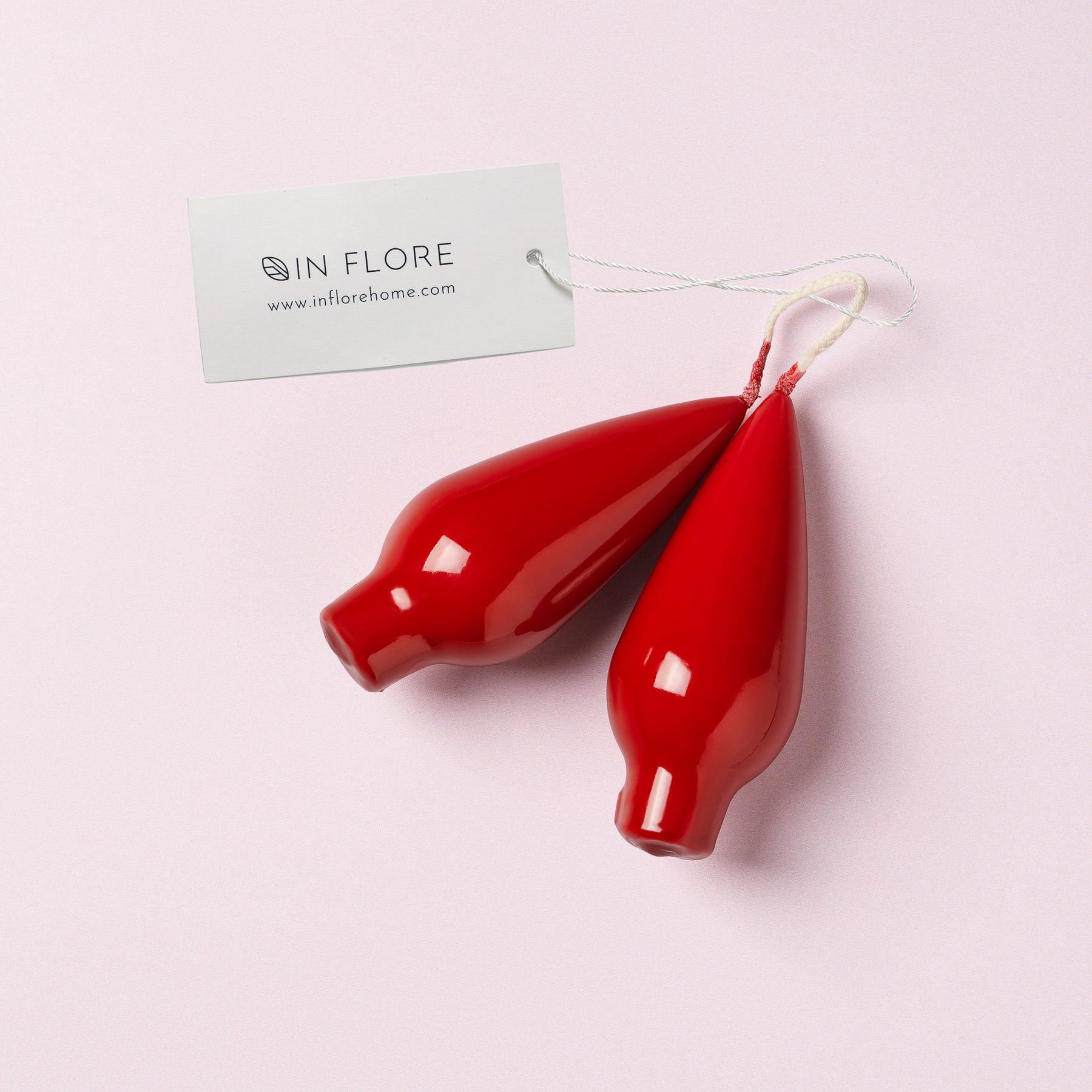 In Flore Camilla drop candle are handmade in Sweden. They come as a 2-pack and are 10 cm tall. The candle is made from 100% stearin candle wax. Camilla drop candle burns bright for 6 hours.
