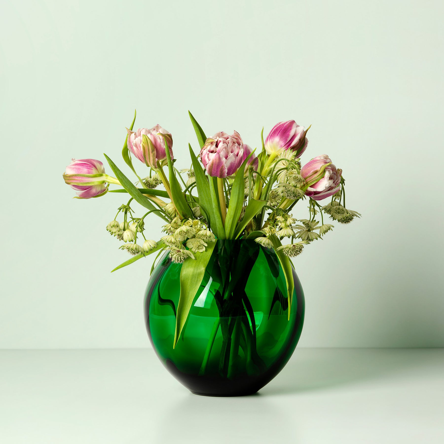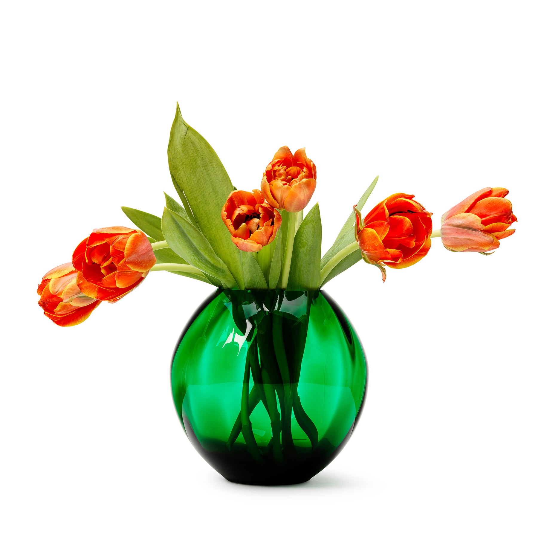 Beautiful handmade In Flore Eva Vase in a dark green color. Our Eva vase is handmade in crystal glass with characteristics of sparkling clarity and brilliance.