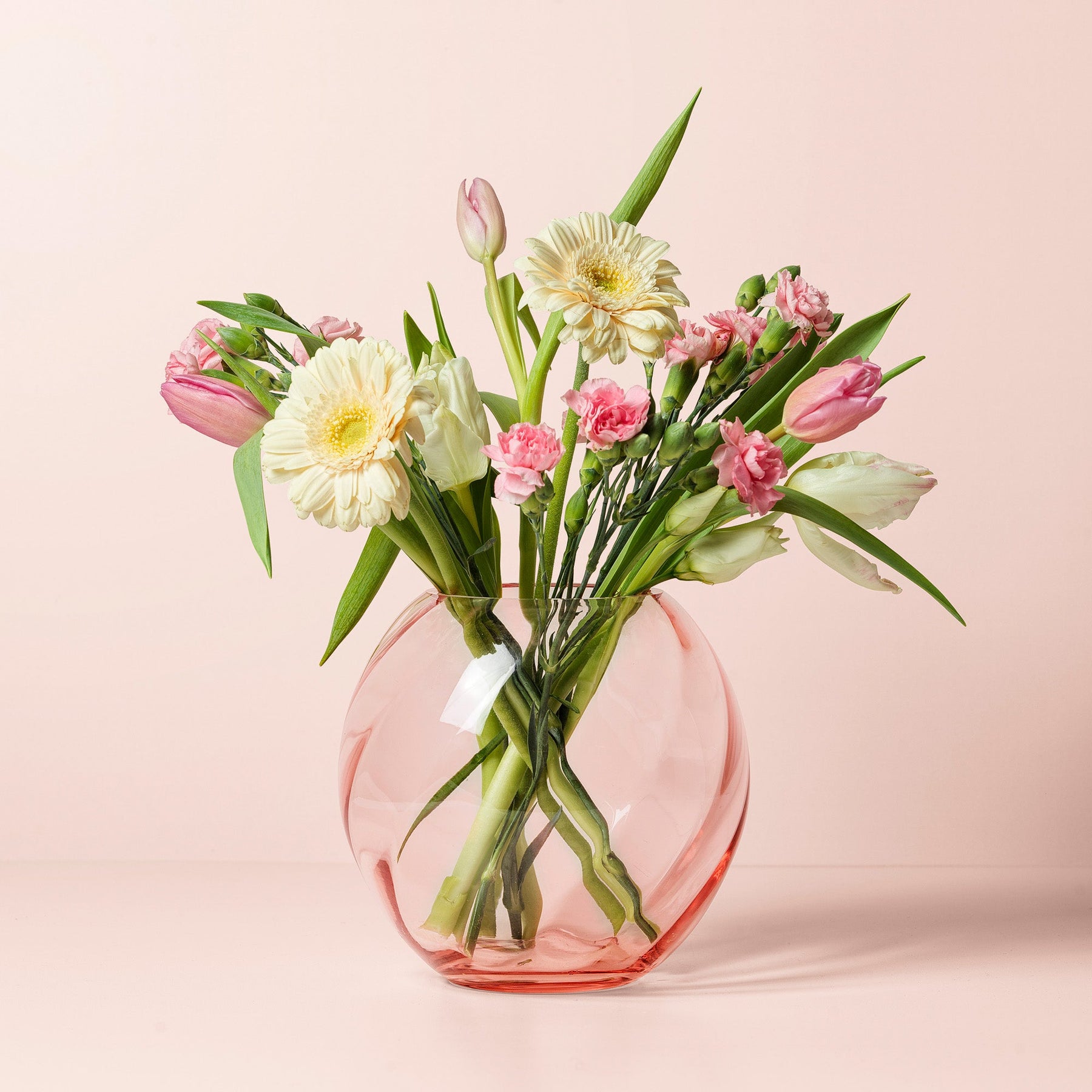 Beautiful handmade In Flore Eva Vase in a light pink color. Our Eva vase is handmade in crystal glass with characteristics of sparkling clarity and brilliance.